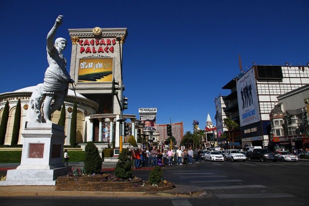 Вид на Ceasars Palaсe. Каждый отель в Вегасе — гостиница, концертный зал, ресторанный дворик и мегамолл в одном флаконе. Поэтому и здания строятся размером с небольшой парижский район: