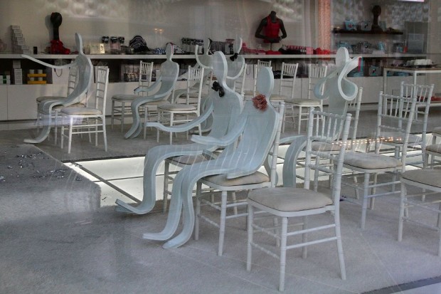 Спонтанность свадьбы обычно не позволяет привезти сюда свидетелей и друзей, их с успехом заменяют деревянные фигуры на стульях: