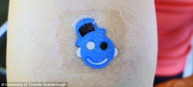 Исследователи Университета Торонто изобрели датчики, которые встраиваются в тонкую гибкую пластину с улыбающейся рожицей. Временное тату скрывает медицинские сенсоры, способные определить уровень pH на коже, изменения которого вызываются метаболическим стрессом. Эта информация может быть полезна спортивным тренерам и исследователям-медикам.
