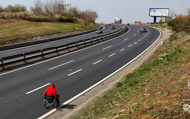 Македонский спортсмен Миле Стойкоски, страдающий параличом нижних конечностей, едет на инвалидной коляске 3500 километров из родного города Крушево на Олимпиаду в Лондоне, чтобы напомнить людям о проблемах инвалидов.