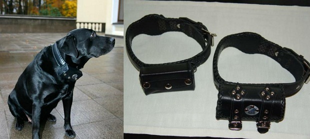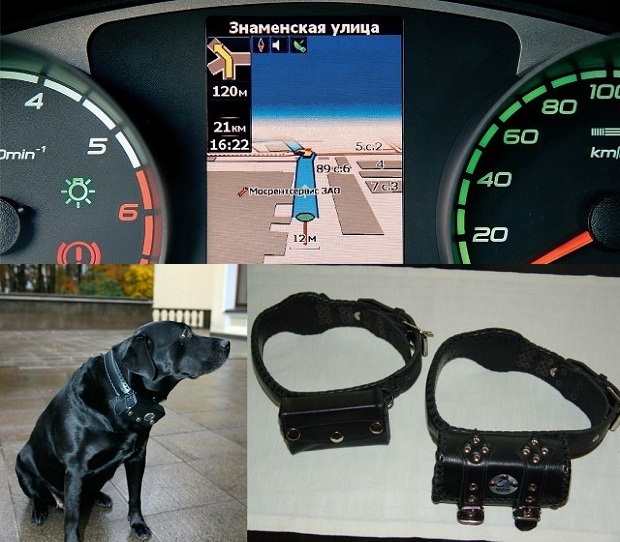 Одним из первых ошейник с ГЛОНАСС получил в подарок Владимир Путин для своего лабрадора Кони. С помощью встроенного ГЛОНАСС/GPS-модуля ошейник со встроенным трекером получает точные координаты, а встроенный GSM-модуль передает их. Таким образом даже если пёс «гуляет сам по себе», хозяин будет в курсе, где искать питомца. Для крупных собак вес170 граммовна ошейнике приемлем, а вот для щенков и более декоративных пород нужны гаджеты полегче и покомпактнее.