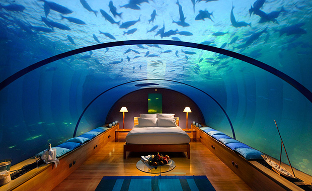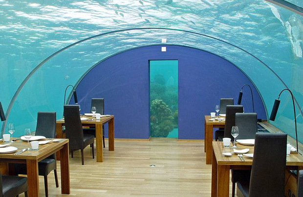 Крыша подводного ресторана сконструирована из акрила, что позволяет гостям во время трапезы наблюдать подводный мир.