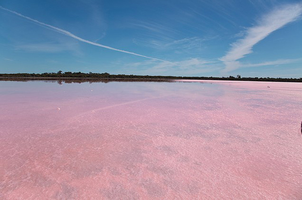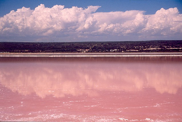 На краю Среднего острова (Middle Island) находится загадочное розовое озеро, окруженное легендами. Сверху поверхность блестящего розового озера Хиллер (Lake Hillier) напоминает глазурь на продолговатом пирожном. Это озеро лесистому уголку Среднего острова придает неожиданные оттенки. Средний остров один из 100 мелких островов, входящих в состав архипелага Исследования, протянувшегося вдоль южного побережья Западной Австралии. Самые загадочные природные достопримечательности Австралии это – Озеро Хиллер и его розовый цвет воды.