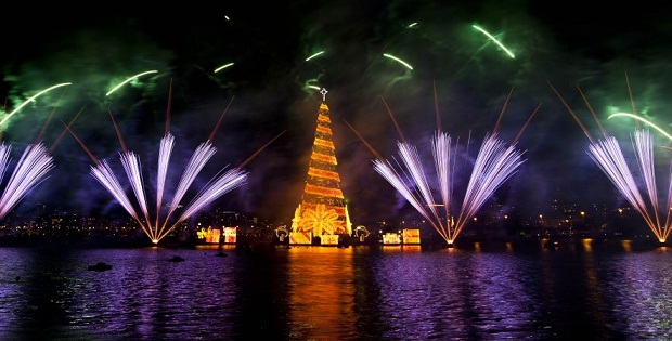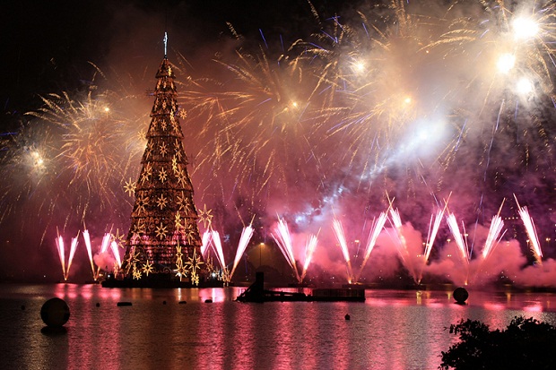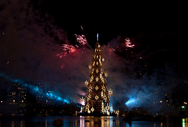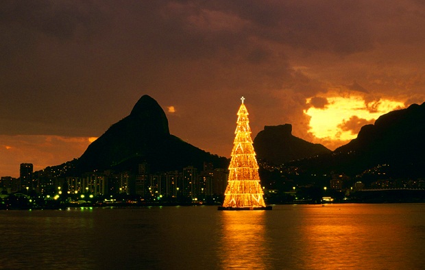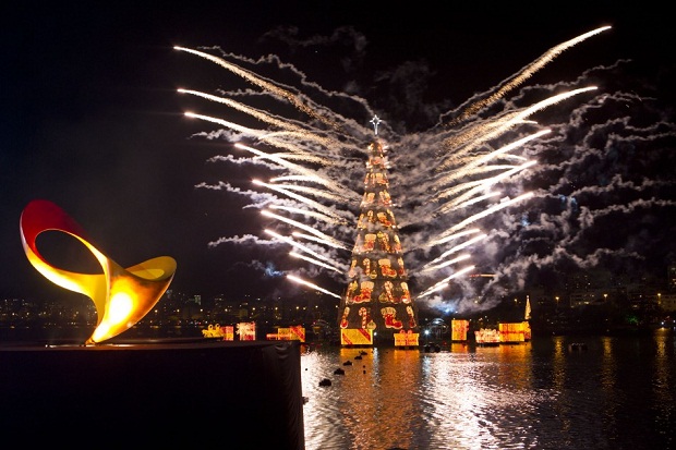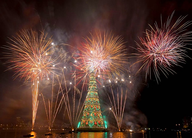 В Рио-де-Жанейро в субботу 1 декабря зажгли самую крупную плавающую на воде рождественскую ёлку в мире высотой 85 метров и весом 542 тонны для того, чтобы обозначить начало праздничного сезона.