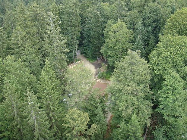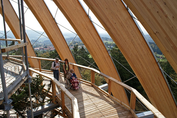 С вершины постройки открывается удивительный вид на все 360 градусов — живописные лесные массивы, ручьи, горы Рахель и Лусен. Красота!