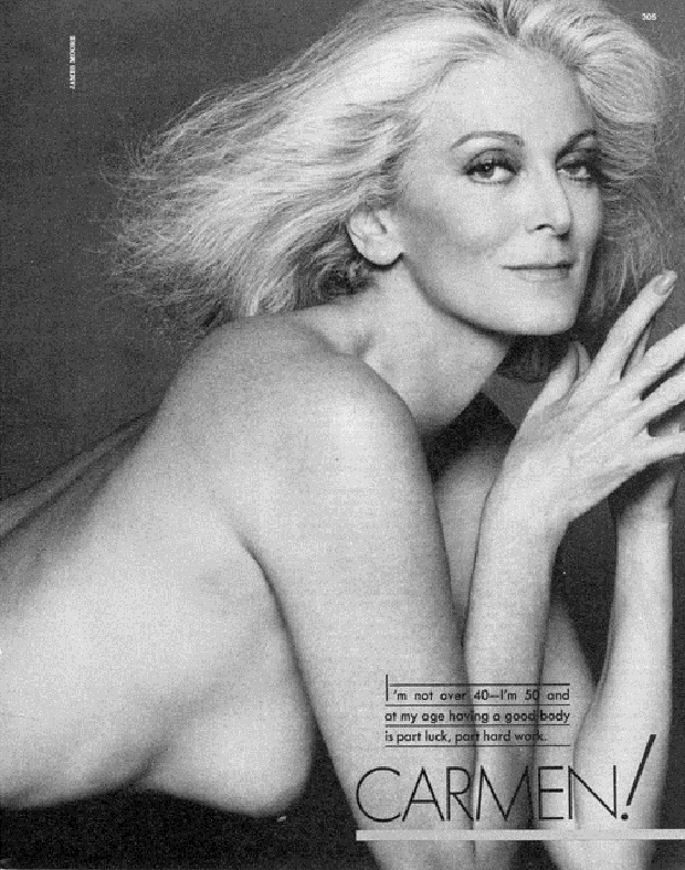 Ей было 47 лет — возраст, который (как тогда считалось) уже не позволяет работать в модной индустрии. Она и не пыталась, но успех пришел к ней окружными путями. На одной из вечеринок Кармен встретила своего приятеля, фотографа Нормана Паркинсона, который неожиданно предложил ей попробовать сделать фотосессию.