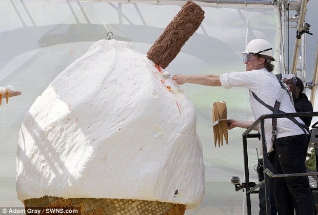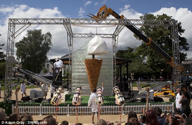 Самое большое мороженое сделали в Англии. Мороженное получилось высотой в четыре метра и более чем тонной весом — чтобы заморозить такую массу, пришлось трудится целый месяц. Создатели пытались нанести на вершину конуса классическую начинку — клубничный джем, но он не удержался на подтаявшем мороженым и сполз вниз.
