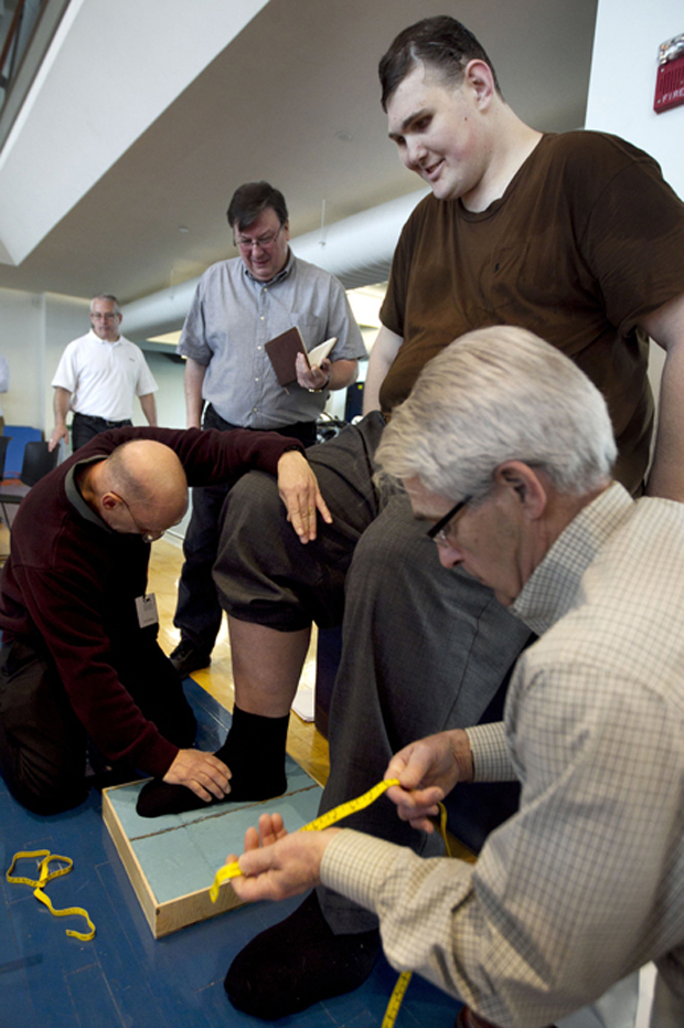 Самый высокий житель США Игорь Вовковинский совершил полет из одного штата в другой, чтобы специалисты компании по производству мужской обуви сделали колодку для пошива ботинок 58 размера.