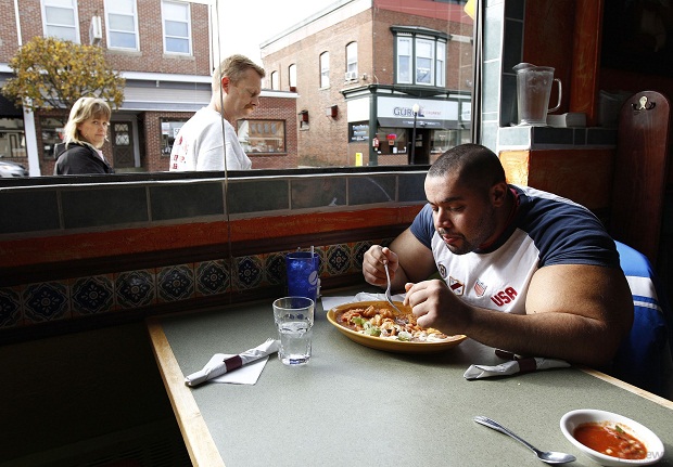 По словам рекордсмена, на такие результаты также влияет специальная ежедневная диета: 7 фунтов белковой пищи (около 3 кг), 9 фунтов углеводов (около 4 кг) и три галлона воды (11 литров).