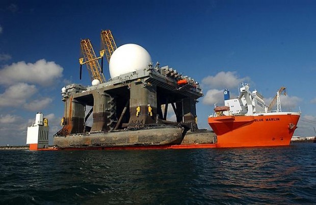 Blue Marlin и нефтяная платформа, уже погруженная для транспортировки