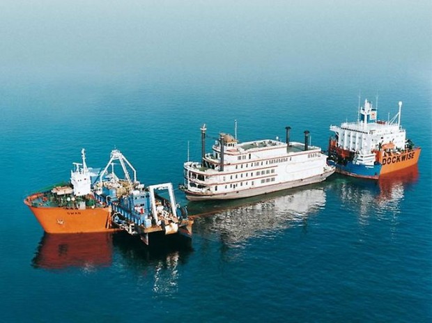 На фото ниже корабль компании Dockwise — Swan, загружает на платформу другое судно:
