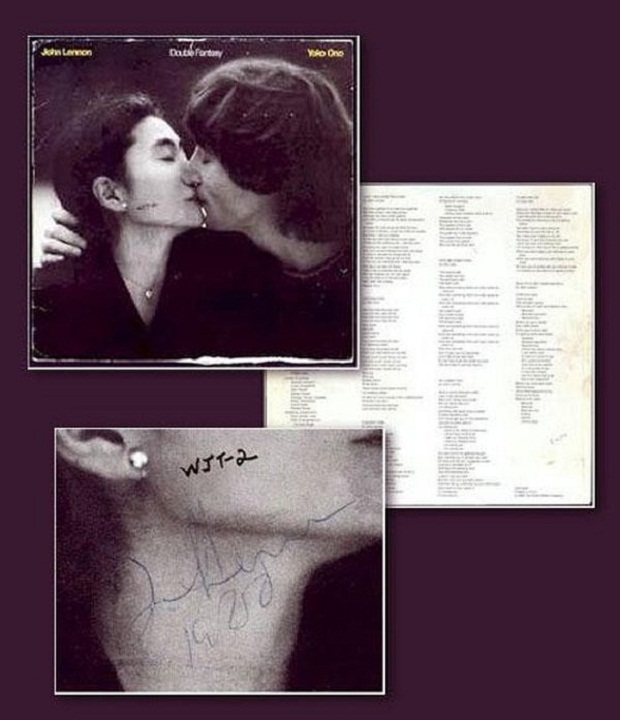 В 1999 году на аукционе была продана та самая копия альбома Джона Леннона и Йоко Double Fantasy, на которой певец поставил автограф для своего будущего убийцы Марка Чэпмена за 5 часов до собственной гибели. Пластинку нашли в декоративной кадке для цветов рядом с местом преступления. На конверте присутствуют отпечатки пальцев Чэпмэна: в свое время альбом послужил одним из доказательств обвинения против убийцы. Цена раритета: 460 000 долларов США.