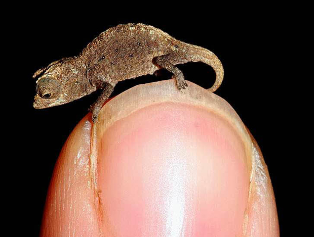 Так в 2010 году биологами был обнаружен новый вид хамелеонов, представители которого отныне считаются самыми маленькими в мире. Размер этих представителей семейства ящериц разве что можно сравнить с размером насекомых: настолько они невелики. Особи обнаруженного вида хамелеонов отличаются наличием чешуйчатого рога и голубоватых точек на конечностях. По мнению ученых, эти хамелеоны ранее не были известны, поскольку их вид находится на грани исчезновения. Предполагается, что на сегодняшний день в мире насчитывается не более одной сотни особей данного вида.