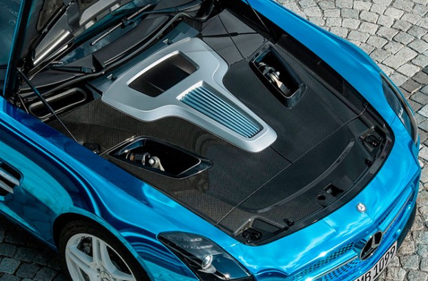 Охлаждаемая жидкостью аккумуляторная батарея установлена там же, где обычно располагается топливный бак SLS AMG. Состоит она из 864 отдельных блоков в 12 модулях, а разработали систему в подразделении Mercedes-Benz AMG в Великобритании. Здесь работали те же специалисты, что создавали систему кинетического восстановления энергии (Kinetic Energy Recovery System KERS) для автомобилей Формулы 1. Батарея высокой производительности работает совместно с продвинутой системой мониторинга температуры, которая управляет охлаждением и кондиционированием в случае перегрева.