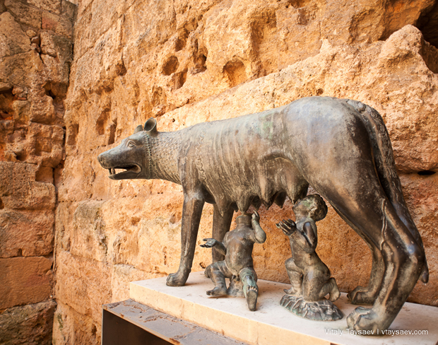 О Риме здесь намекают повсюду. Капитолийская волчица вскормившая двух братьев – Ромула и Рема, основателей Рима.