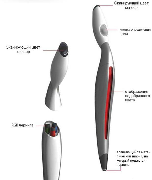 Сканирующая ручка была разработана корейским дизайнером Джинсу Парком (Jinsu Park). И в идеале должна сканировать цвет с любой поверхности, затем RGB картридж, находящийся внутри ручки, должен смешивать чернила, получая таким образом отсканированный цвет.