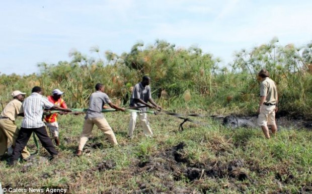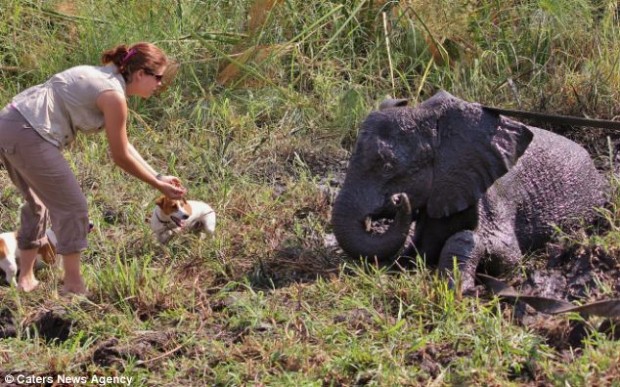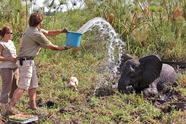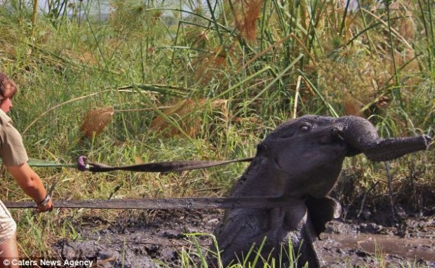 В Зимбабве сотрудники заповедника вытащили 5-летнего слоненка из болота, где он увяз более 12 часов назад и все это время боролся за жизнь.