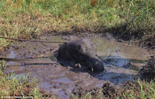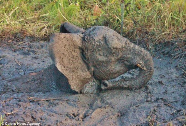 Судя по всему, малыш попал в грязевое болото довольно давно и у него уже не оставалось сил бороться. К тому времени он увяз в грязи по шею и уже не мог двигаться.
