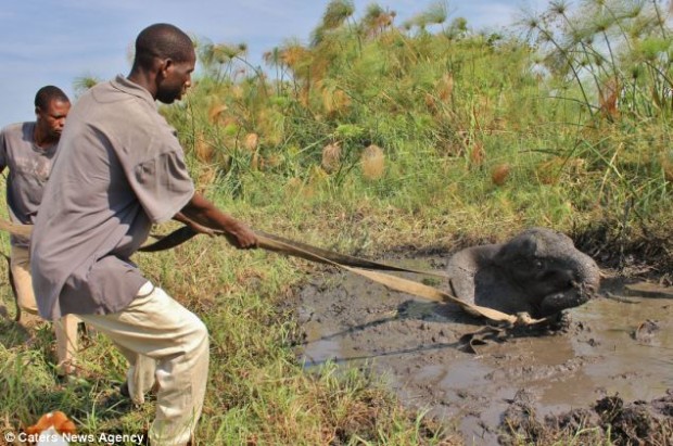 Первыми к слоненку прибыли владельцы сафари-парка супруги Брэдли и Аннелиз Уайт, услышавшие сигнал SOS по радио. Позже к ним присоединились спасатели. Вместе они попытались вытащить детеныша из болота с помощью канатов и веревок.