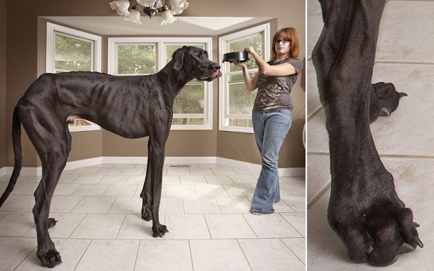 В Книгу рекордов Гиннеса занесли датского дога по кличке Зевс из американского штата Мичиган как самую высокую собаку в мире. Рост Зевса составляет 1,12 метра.