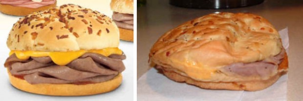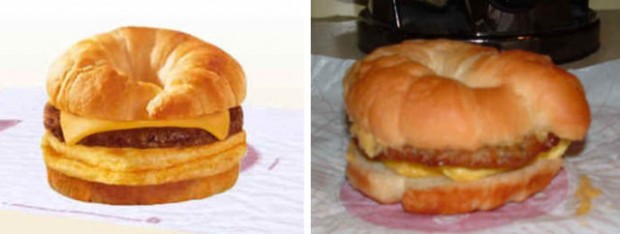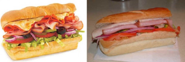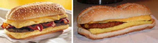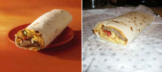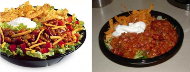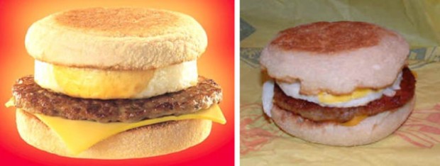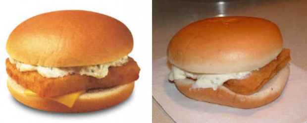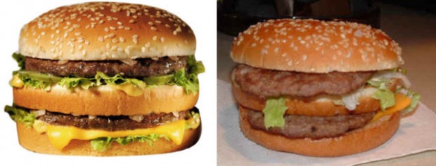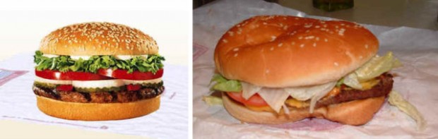 На этих фотографиях в сравнение поставлена продукция из рекламы фаст-фудов с тем, что посетители получают в реальности.