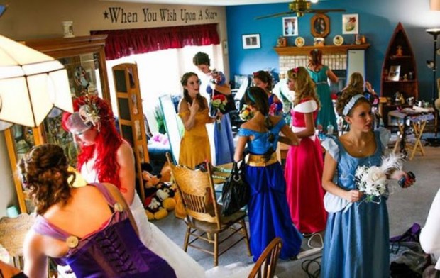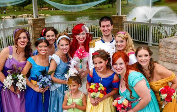 Джейми и Кристоферу в детстве так нравилось смотреть диснеевские мультики, что их любовь ко всему, что связано с Диснеем, повзрослела вместе с ними. Они решили сыграть свадьбу в диснеевском стиле, на один день став принцессой Ариэль и принцем Эриком. А предложение руки и сердца Кристофер сделал довольно необычно: встав на колено, он подарил своей возлюбленной хрустальную туфельку, в которой и находилось обручальное кольцо.