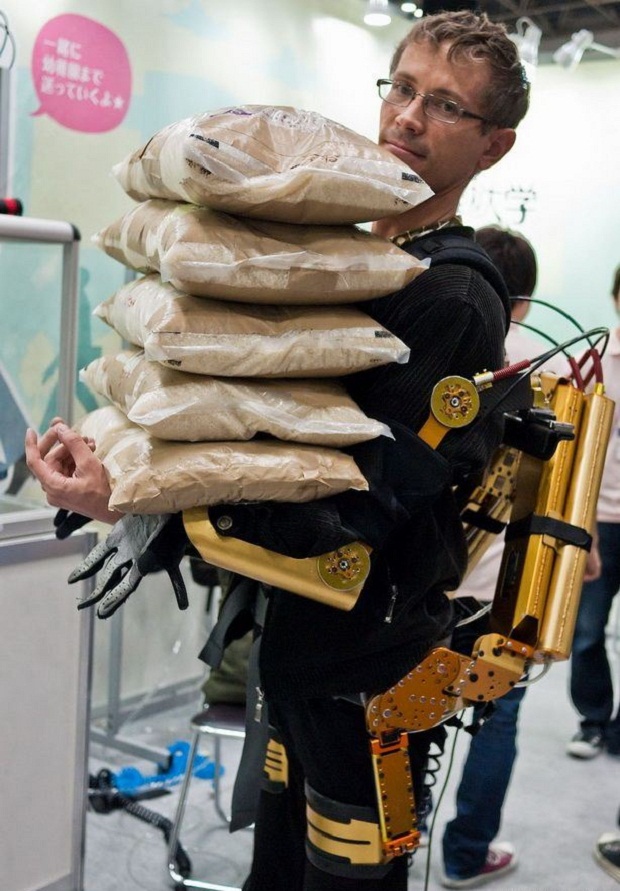 Его придумали японские студенты, очевидно, насмотревшиеся американской фантастики. Устройство, поддерживающее мышцы спины и конечностей, позволяет носить в руках до 150 килограмм. Впрочем, техническую новинку предлагается использовать не в боевых, а в мирных целях. Например, для облегчения жизни все тем же инвалидам.