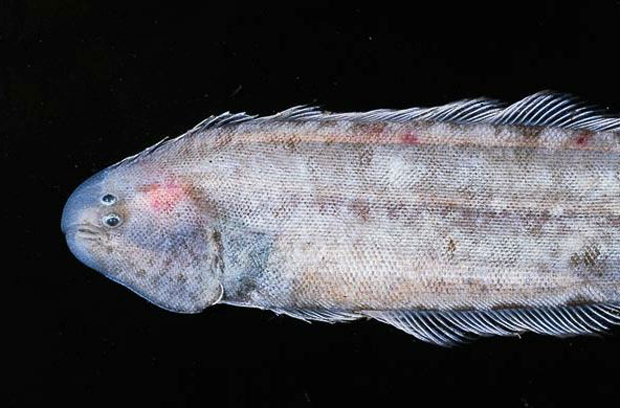 Этот красавец является одним из видов рыбы-языка, которые обычно встречаются в мелководных эстуариях или тропических океанах. Этот экземпляр живет в глубинных водах, и был выловлен со дна в начале этого года в западной части Тихого океана. Интересно, что некоторые рыбы-языки были замечены около гидротермальных жерл извергающих серу, но ученые ещё не разобрались в механизме, который позволяет этому виду выжить в таких условиях. Как и у всех донных рыб-языков, оба его глаза расположены на одной стороне головы. Но в отличие от других представителей этого семейства, его глаза похожи на глаза-наклейки или на глаза от пугала.