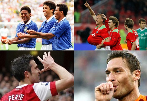 Начиная с традиции раскачивать, заведённой Бебето в 1994 году, но не заканчивая ей. В своё время Тотти ввёл моду посасывать палец в честь своего малыша, а ван Перси пообещал сыну, что, если забьёт гол в матче, покажет трибунам нос. Впрочем, ещё не родившиеся дети также заслуживают внимания.