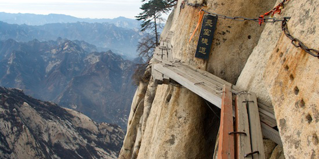 Вы бы отважились пройти по узким деревянным дощечкам, прибитым к отвесной скале на головокружительной высоте? Без страховки, без ограды, лишь держась за стальную цепь, прикрученную прямо к скале на уровне груди? Если да, можете рискнуть и купить билет в Китай.