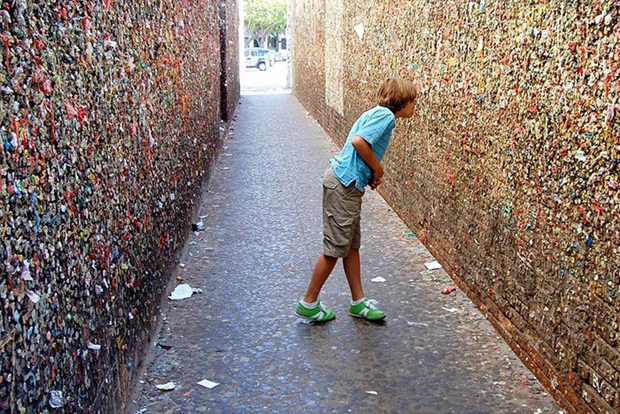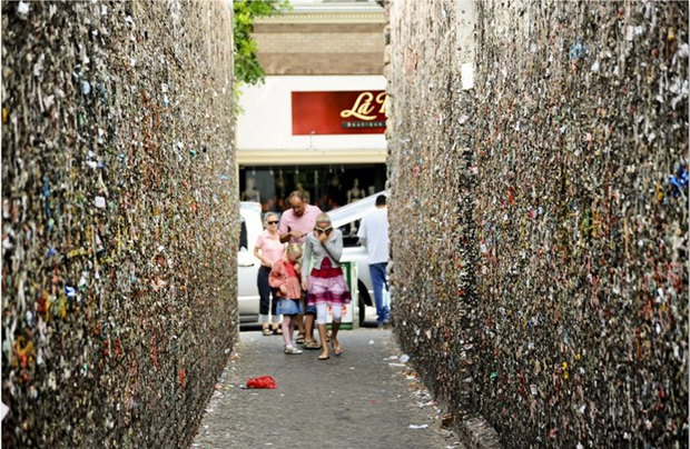 Улица разноцветных жвачек Яркая и забавная улица Калифорнии, стены которой улеплены сверху донизу самыми разными пожёванными жвачками. Наверно, там не очень вкусно пахнет, люди на фото закрывают носы! :)Источник Знаешь того, кому необходимо увидеть это? Сообщи: