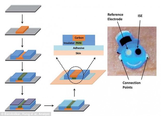 Исследователи Университета Торонто изобрели датчики, которые встраиваются в тонкую гибкую пластину с улыбающейся рожицей. Временное тату скрывает медицинские сенсоры, способные определить уровень pH на коже, изменения которого вызываются метаболическим стрессом. Эта информация может быть полезна спортивным тренерам и исследователям-медикам.