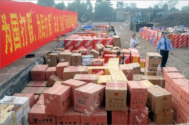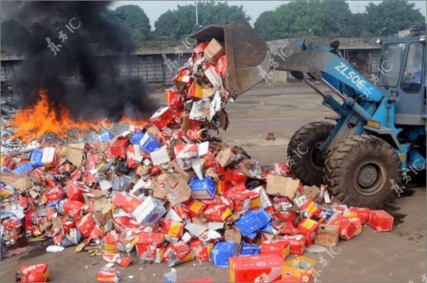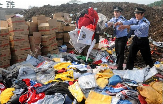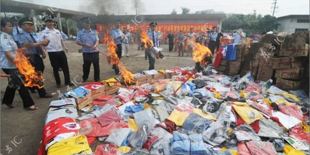 Уничтожение поддельной продукции в Китае В Китае уничтожили десятки миллионов единиц поддельных товаров известных брендов. Полиция надеется, что все же сможет побороть поток некачественного товара и уничтожит предприятия, производящие подделки. Знаешь того, кому необходимо увидеть это? Сообщи: