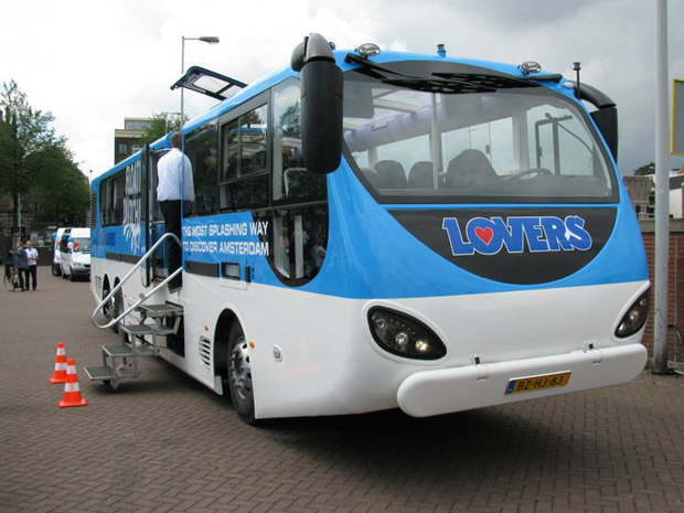 Владельцы удивительного средства передвижения – пароходство Lovers и амстердамский аэропорт Схипхол. Поездка начинается у аэропорта, а неподалеку от Технологического музея Nemo автобус соскальзывает в реку и продолжает маршрут вплавь, сообщает Berner Zeitung.