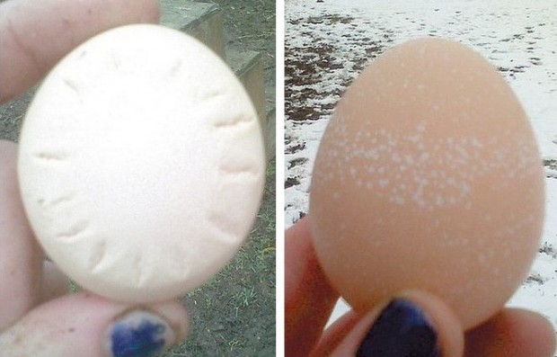 По словам хозяйки странной курицы Саши Андерсон, все началось еще в августе 2011 года, когда Рози снесла два яйца подряд с узором в виде солнечных лучей.