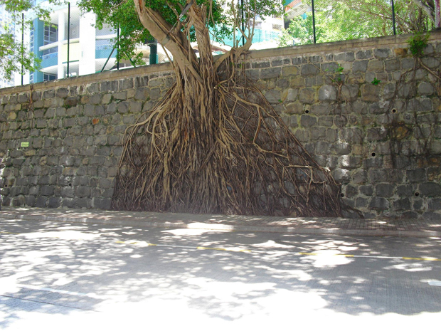 В Гонконге больше 1200 таких растущих из стен деревьев. Это в основном представители вида фикус мелкоплодный, хотя другие «деревья–душители» тоже встречаются.