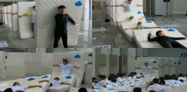 Тысяча и один китаец воссоздали эффект домино, упав друг на друга с матрацами. Затея китайцев попала в Книгу рекордов Гиннеса.