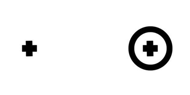 Итак, предлагаем вам поискать в глазах слепые пятна! Это делается так: закройте правый глаз и левым глазом посмотрите на правый крестик, который обведён кружочком. Держите лицо и монитор горизонтально. Не сводя взгляда с правого крестика, приближайте (или отдаляйте) лицо от монитора и одновременно следите за левым крестиком (не переводя на него взгляд). В определённый момент он исчезнет.