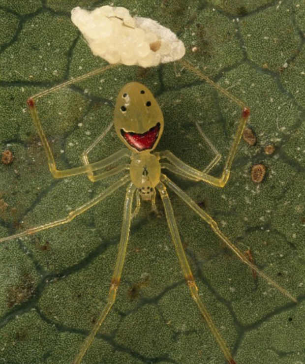 Ученые считают, что столь необычная окраска помогает улыбающимся паучкам выжить.
