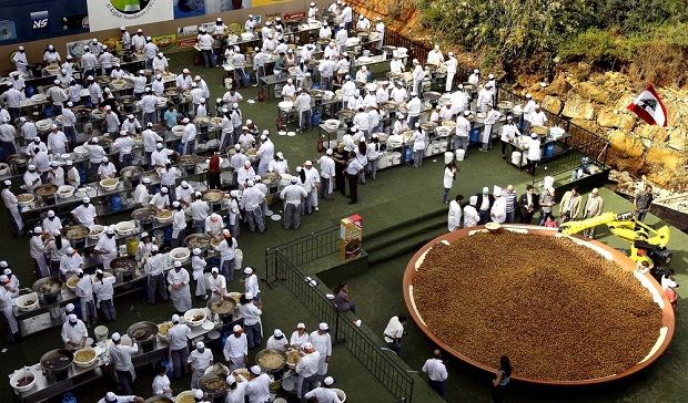 6. Повара колдуют над фалафелем, чтобы добавить ее на огромную тарелку и попытаться поставить новый мировой рекорд в Бейруте. (Photo by Anwar Amro/AFP Photo)
