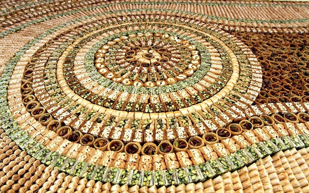 11. Мозаика из традиционных арабских сладостей длиной 112 метров. (Photo by Louai Beshara/AFP Photo)
