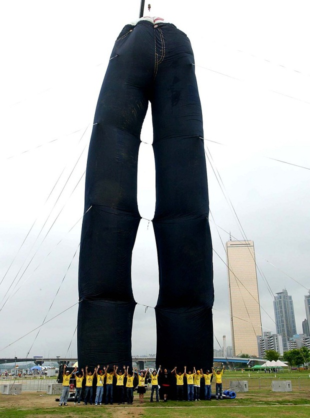 13. Жители Сеула на фоне самых больших джинсов «Levis» высотой 30 м. (Photo by Chung Sung-Jun)