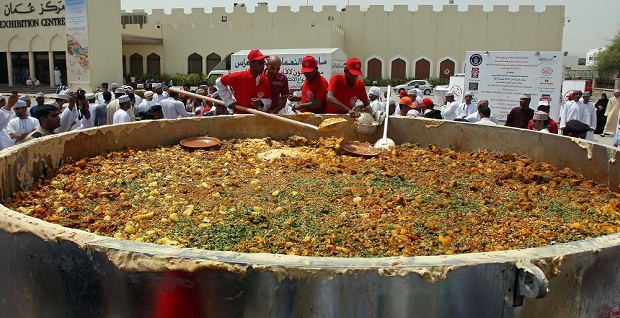 15. Оманцы мешают ингредиенты в огромном котле. Они готовят традиционною блюдо «кабса». (Photo by Mohammed Mahjoub/AFP Photo)