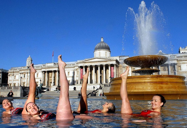 16. Синхронистки в Лондоне пытаются поставить новый мировой рекорд на самое быстрое махание ногами за минуту в воде. (Photo by Bertrand Langlois/AFP Photo)