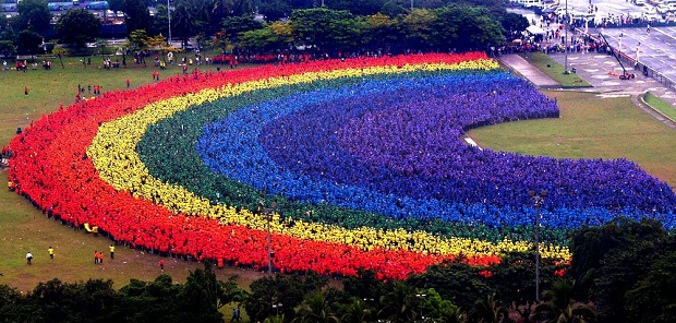 21. Около 31 000 студентов, преподавателей и выпускников Политехнического университета Филиппин создали «человеческую радугу» в центральном парке Манилы. (Photo by AFP Photo)