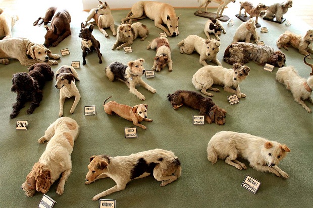 29. Самая большая в мире коллекция чучел собак. Ее владелец — барон Джордж Хаас, который покончил с собой в 1945 году перед депортацией в Австрию. У барона были тысячи животных и около 200 собак, 51 из которых он превратил в чучела после их смерти. (Photo by Radek Mica/AFP Photo)