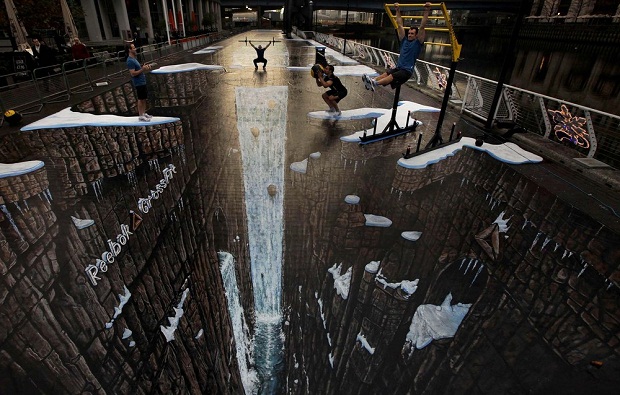 30. Самый масштабный панорамный 3D рисунок на улице. Его длина – 60 м, а площадь – 891 кв.м. Его создал британский художник Джо Хилл в Лондоне. (Photo by Matt Dunham/Associated Press)