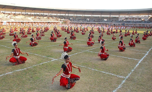 34. 560 индийских танцовщиц Одисси пытаются установить мировой рекорд в Бхубанесваре. (Photo by STRDEL/AFP Photo)