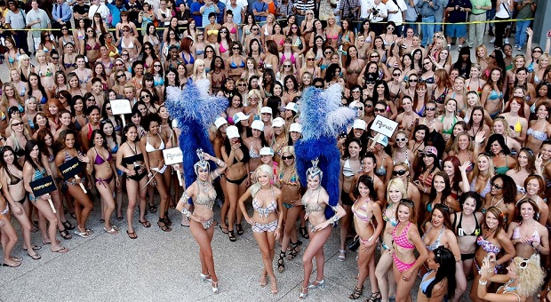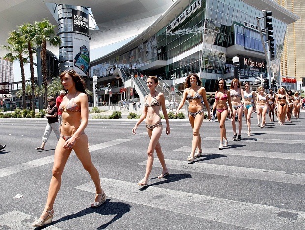 40. Женщины в бикини идут по Лас-Вегасу. На самом большом параде в бикини в мире был 281 человек. (Photo by Ethan Miller/Visitlasvegas.com)