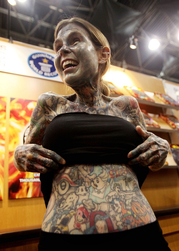 45. Джулия Гнусе – самая татуированная женщина в мире. 95% ее тела покрыто татуировками, причем, каждый рисунок выполнял один мастер. (Photo by Mario Tama)